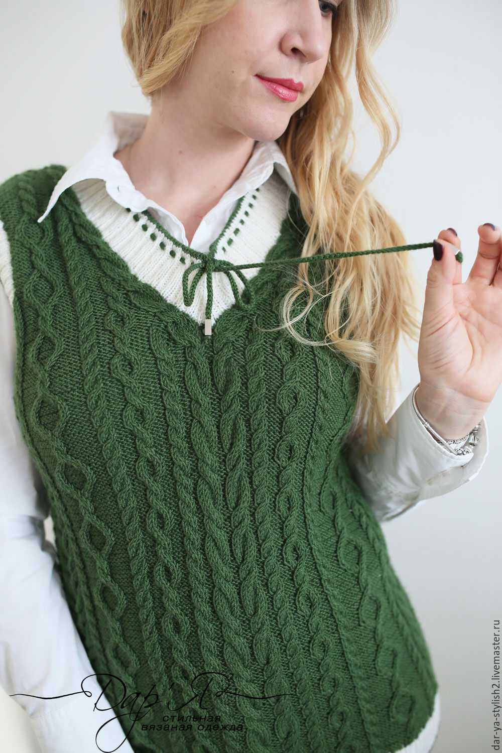 Достойное место занимают вязаные женские жилеты или безрукавки. Такие модели делают образ девушки женственным, нежным, романтичным.