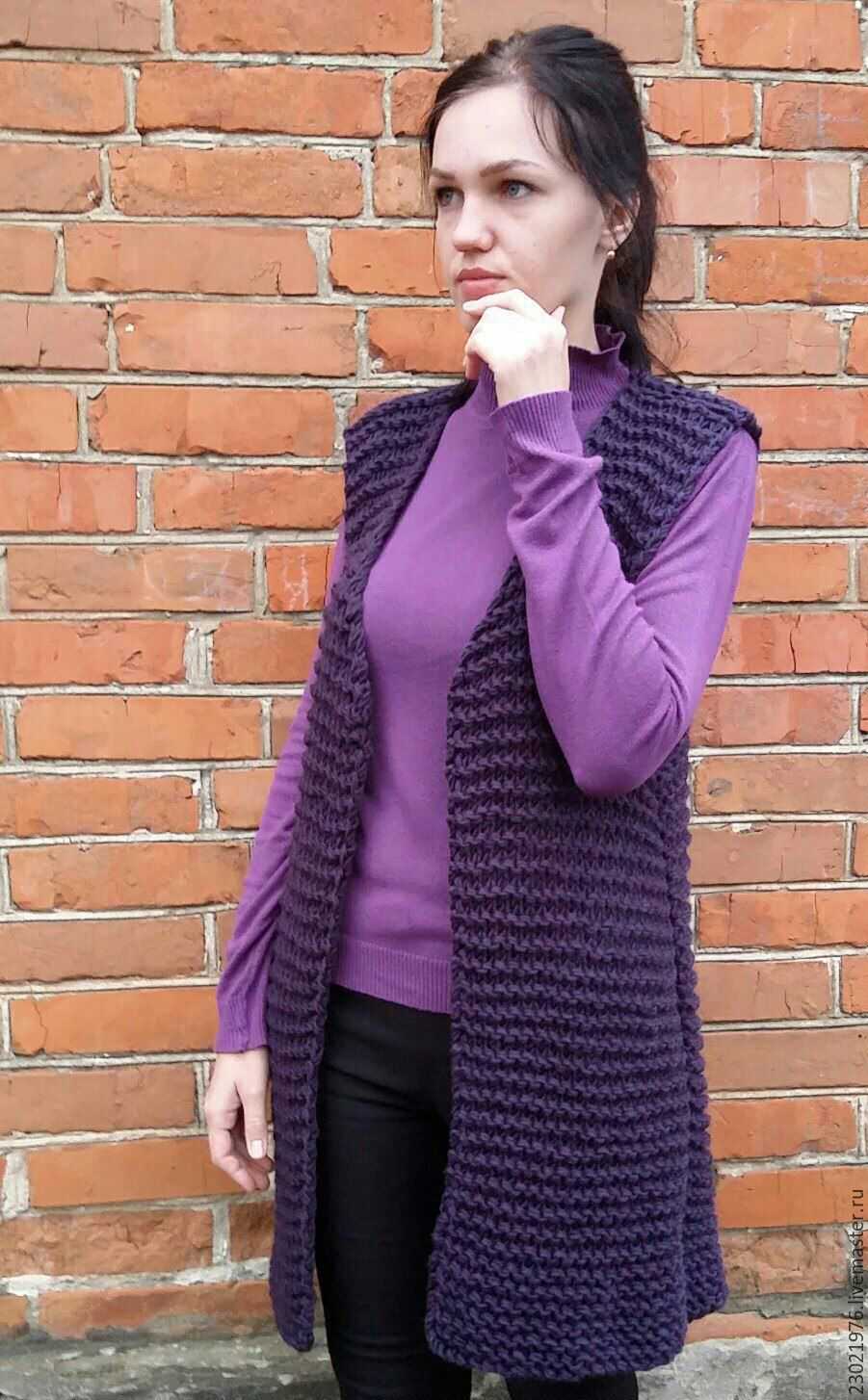 Готовое изделие аккуратно отпарить, не растягивая. Особенно воздушным и легким удлиненный жилет получится из 100% хлопковой пряжи.