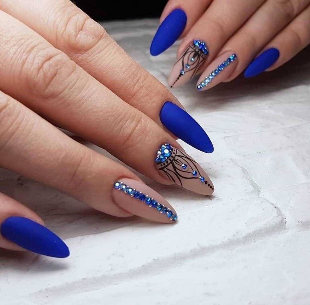 В Новый год не обойтись без синего маникюра, при этом можно выбирать как нежные оттенки, так и более глубокие