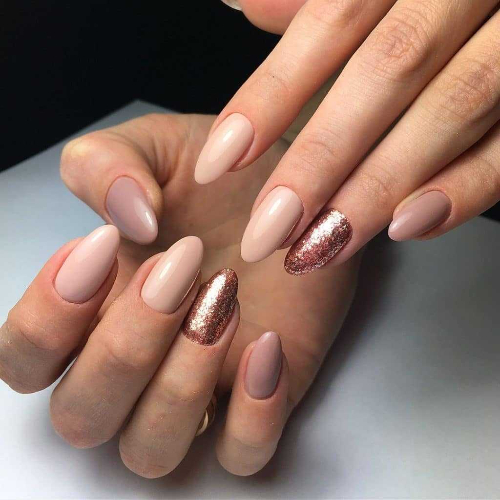 Фото: маникюр на миндальную форму в нюдовых цветах