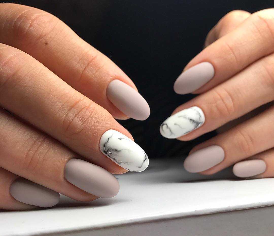 - дополните дизайн мраморным узором – этот очередной модный тренд сезона полюбился многим модницам. Кроме того мраморный маникюр великолепно выглядит в сочетании с белым и бежевым цветом.