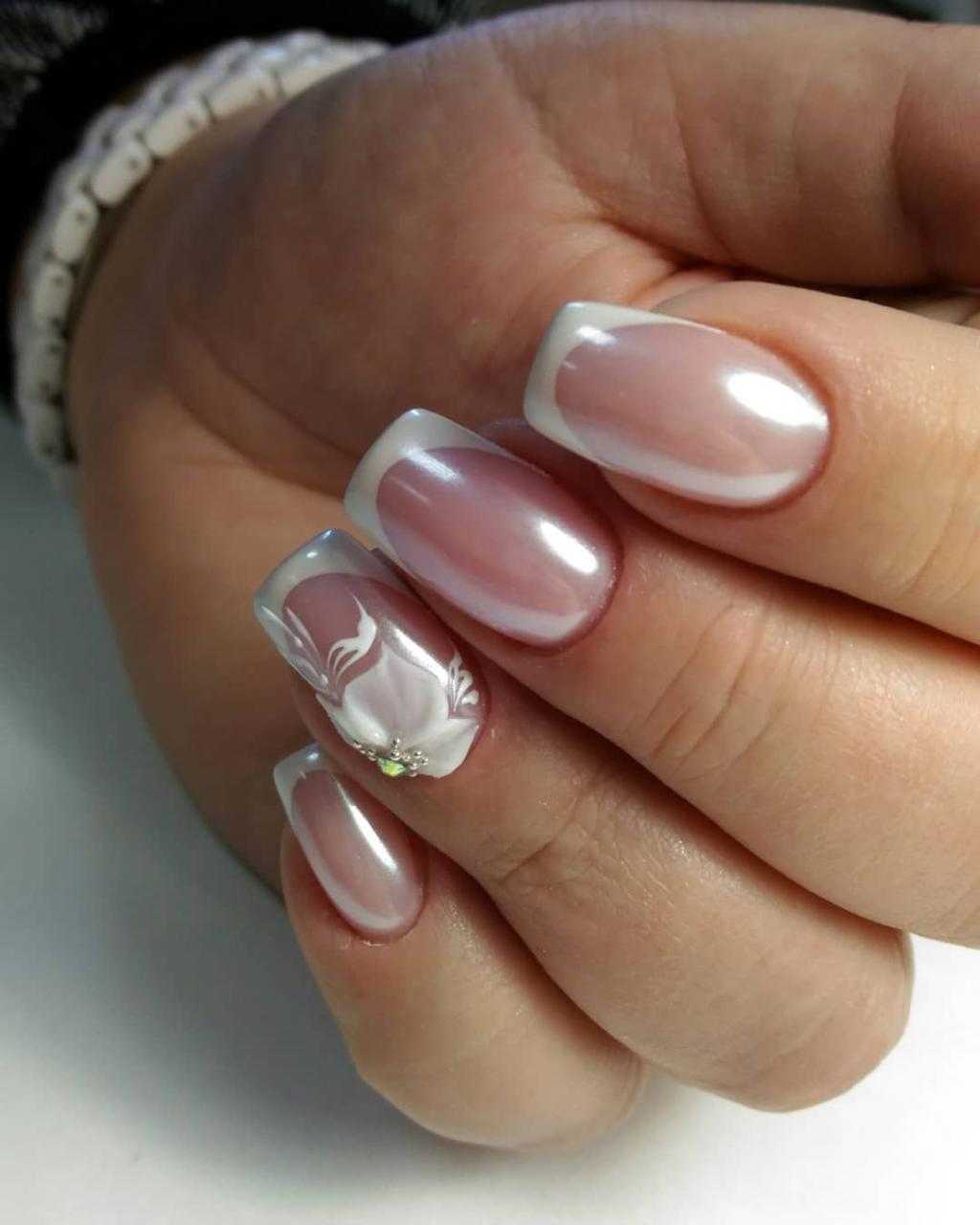 Классический френч маникюр гель-лак Цветочный французский дизайн Техника френч маникюра гель-лаком знакома нам давно, и не первый раз мы обращаемся к данному стилю нейл-дизайна, который не единожды выручал представительниц прекрасного пола. Современный френч – это, как то «самое» маленькое черное платье, что способно спасти женщину, когда нечего надеть. Новинки френч маникюра гель-лака настолько интересны и оригинальны, что понравятся без сомнений многим леди. Яркий и спокойный, классический и с рисунком, с фольгой, лентой, блесточками, кристаллами и другим декором – любимый френч дизайн гель-лаком пополнился вдохновляющими вариациями. Спеши попробовать!