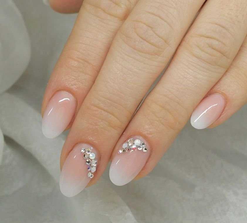 Нюдовый маникюр: идеи на миндалевидных ногтях