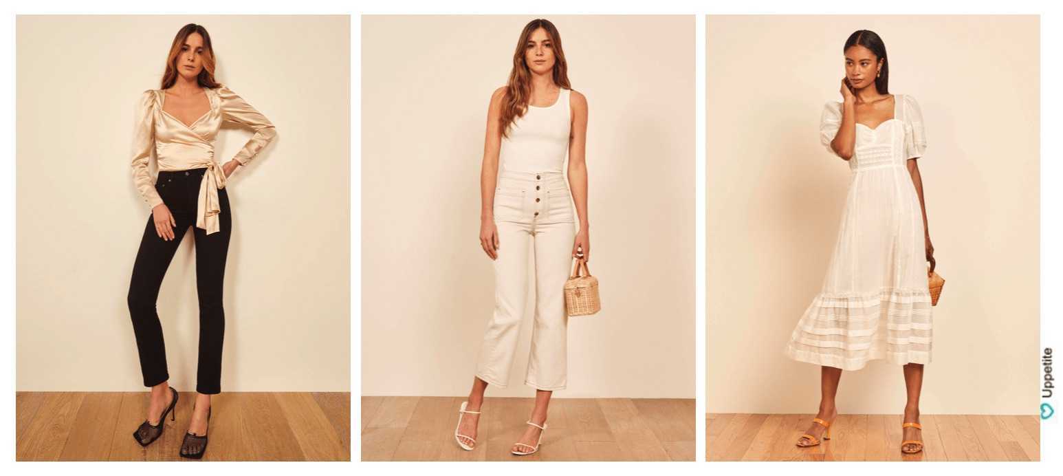 Reformation родом из калифорнии. Меня он привлекает тем, что использует экологичный подход в производстве. В современном мире для многих этот пункт важен, и если вы следите за философией разумного потребления и экологичности — вам сюда. Здесь вы найдете натуральные ткани, качественные вещи, сделанные из переработанных материалов, женственный стиль и уникальный крой. У них есть отдельная линия петит, туда входят не все модели, но есть много красивых платьев. Платья для выхода, качественные джинсы, у которых не будут вытягиваться коленки и много вещей в женственном и романтичном стиле. Средний ценовой уровень.