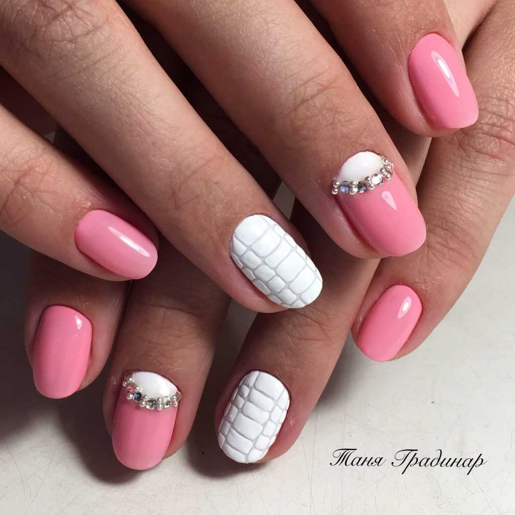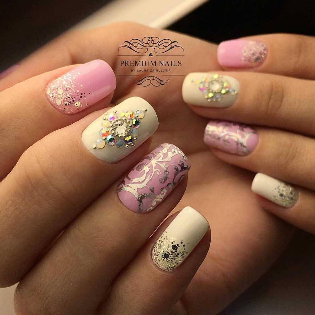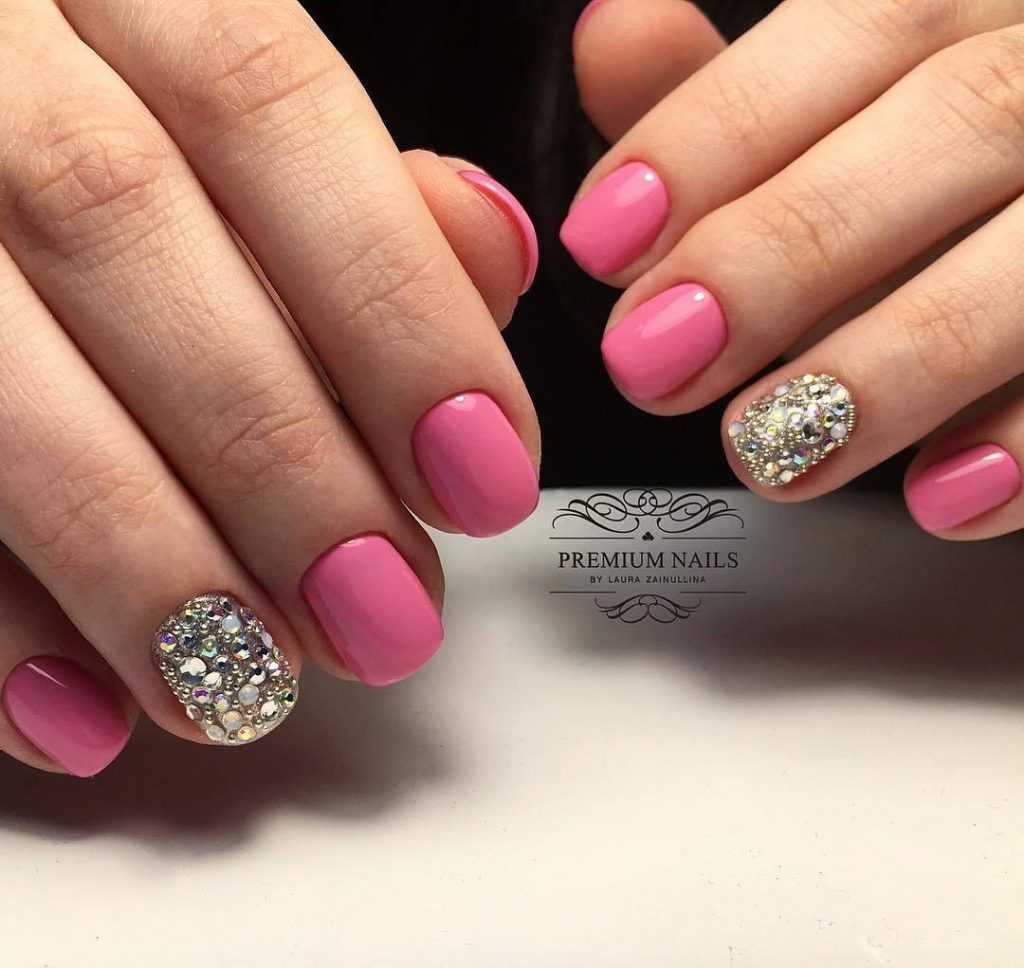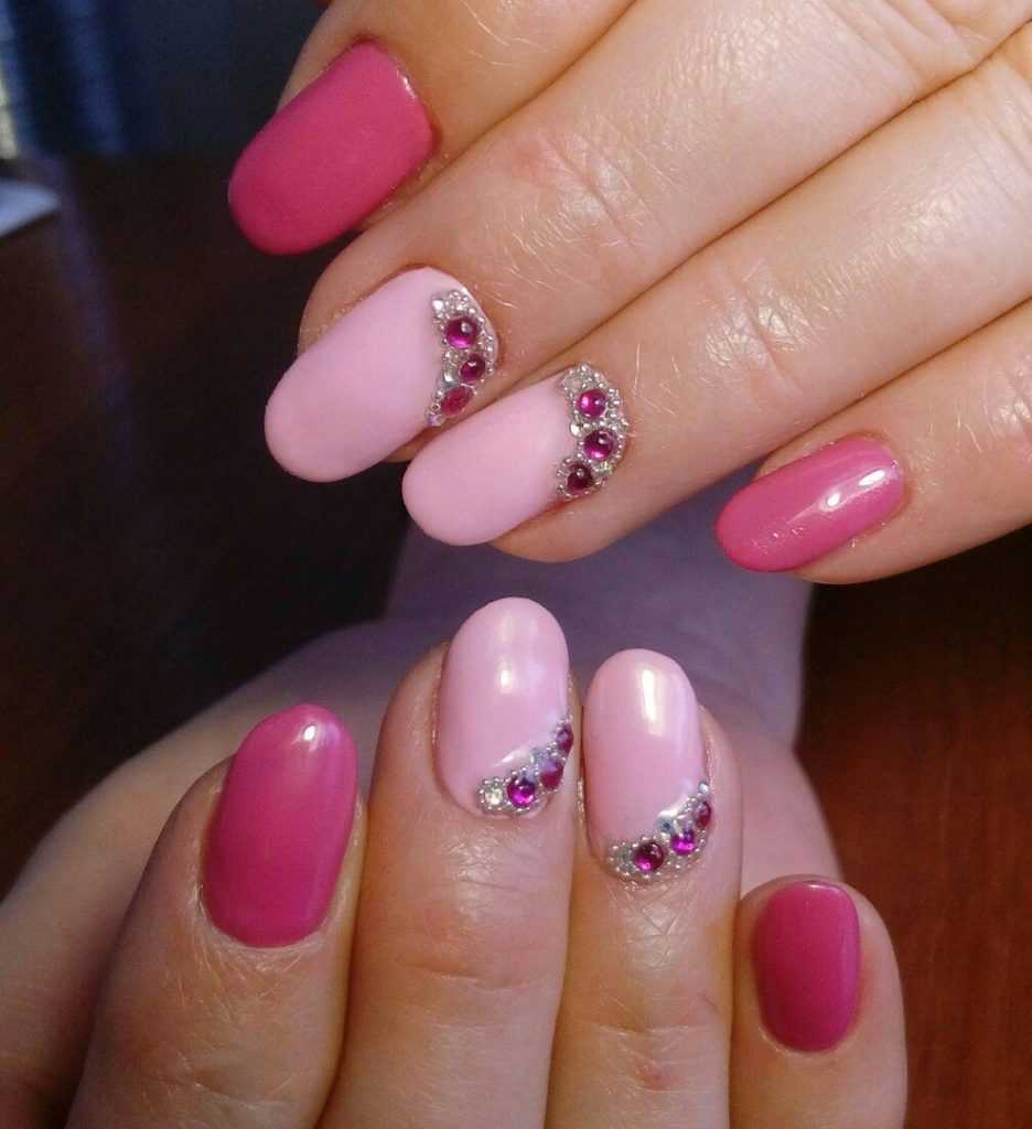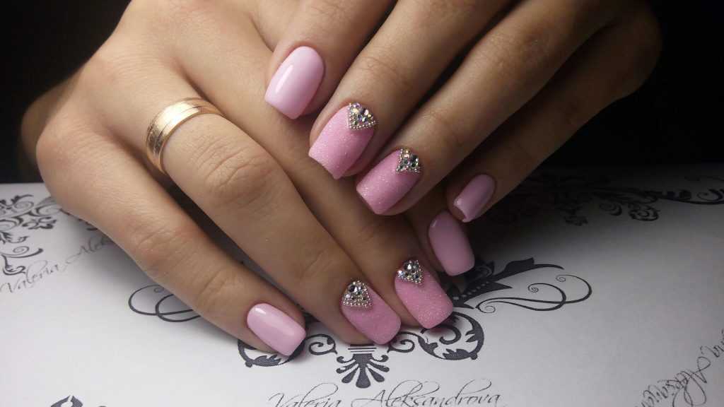 Красивый розовый маникюр со стразами в нашей фото-подборке: