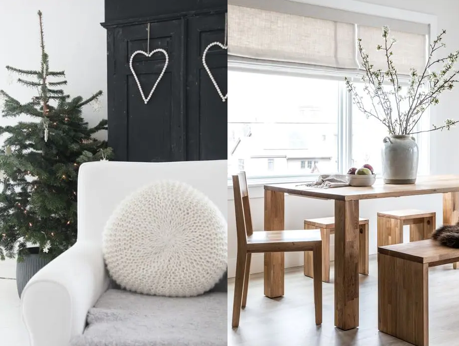 Очень много общего между минимализмом и скандинавским направлением, которое появилось в 30-х годах прошлого столетия. Суровые викинги еще в ХІХ столетии отдавали предпочтение просторным, отлично освещенным жилищам, выполненным в светлой цветовой гамме. В то же время это очень уютный стиль. Теплоту северному скандинавскому жанру придает огромное количество текстильных элементов: шерстяных изделий, подушек, пледов и ковров с длинным ворсом. Минималистическому же направлению характерны гладкие ткани или изделия с короткими ворсинками.