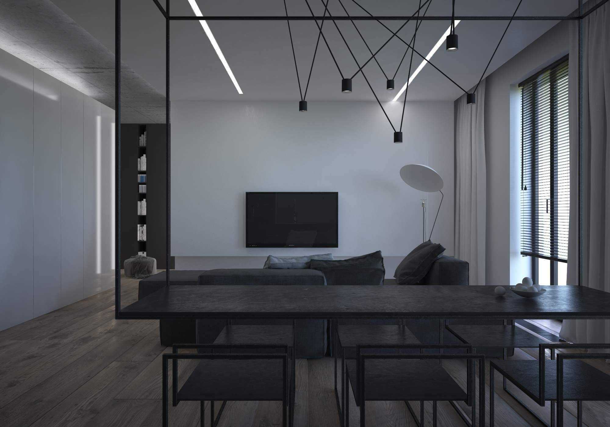 На фото ниже – примеры минималистичных интерьеров кухонь-гостиных.