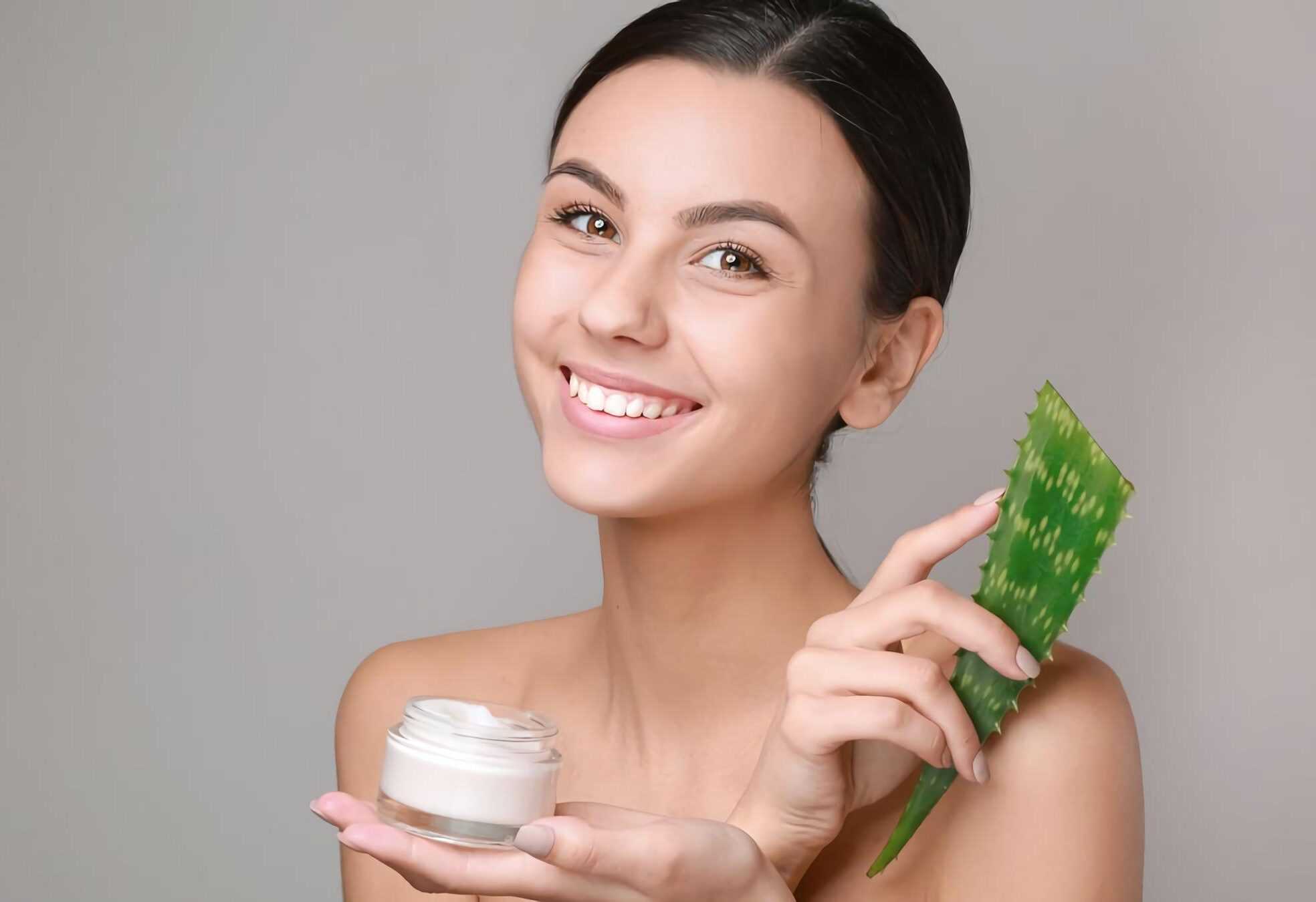 - Алоэ вера успокаивает кожу, предотвращает сухость и раздражение.