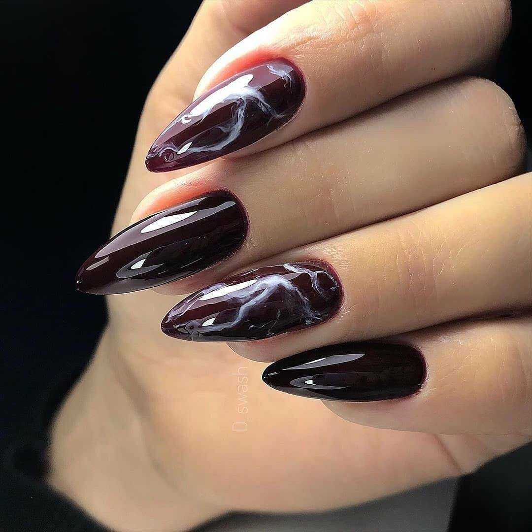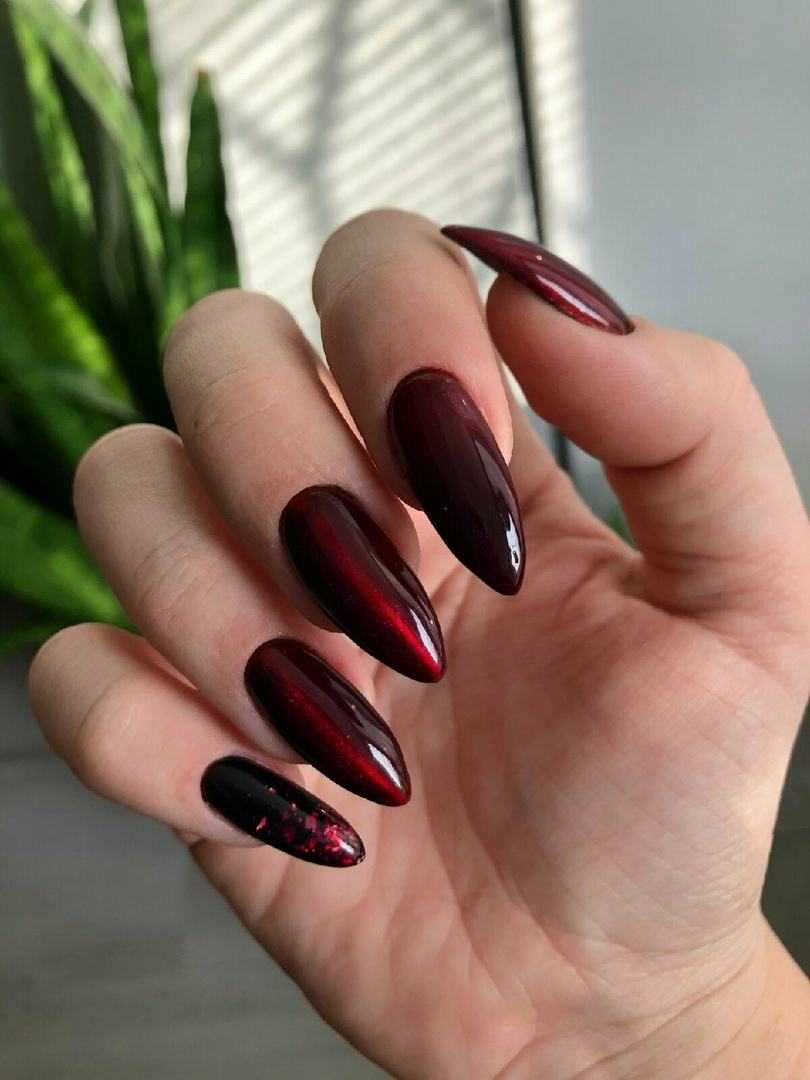 Популярен в 2022 году в виде минимализма. Бордовый, винный и вишневый актуален с длинными и короткими ногтями.