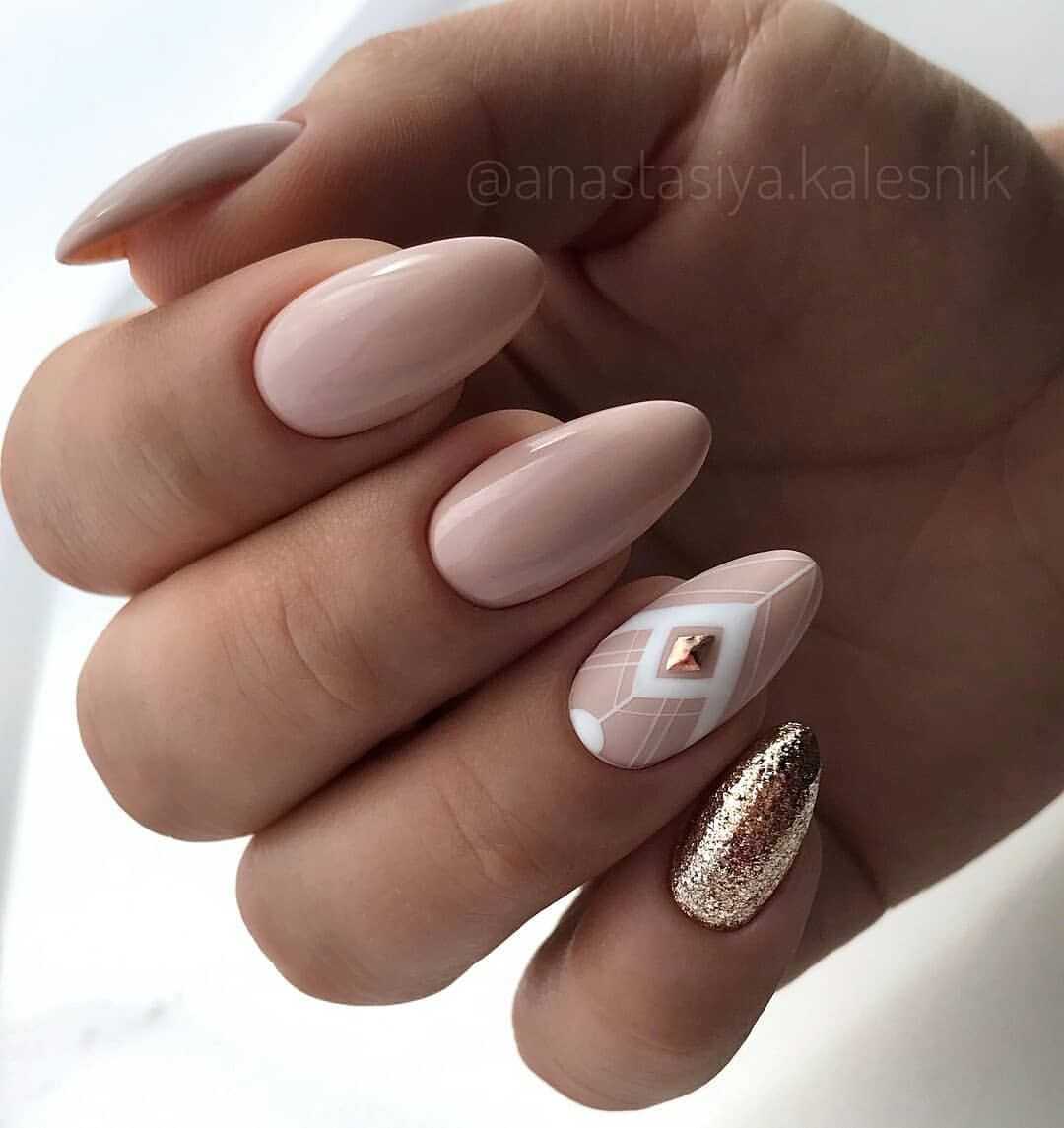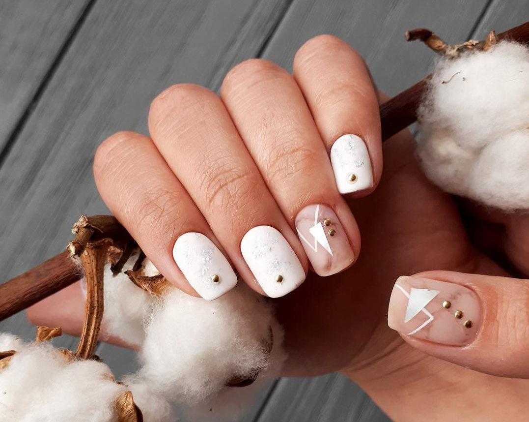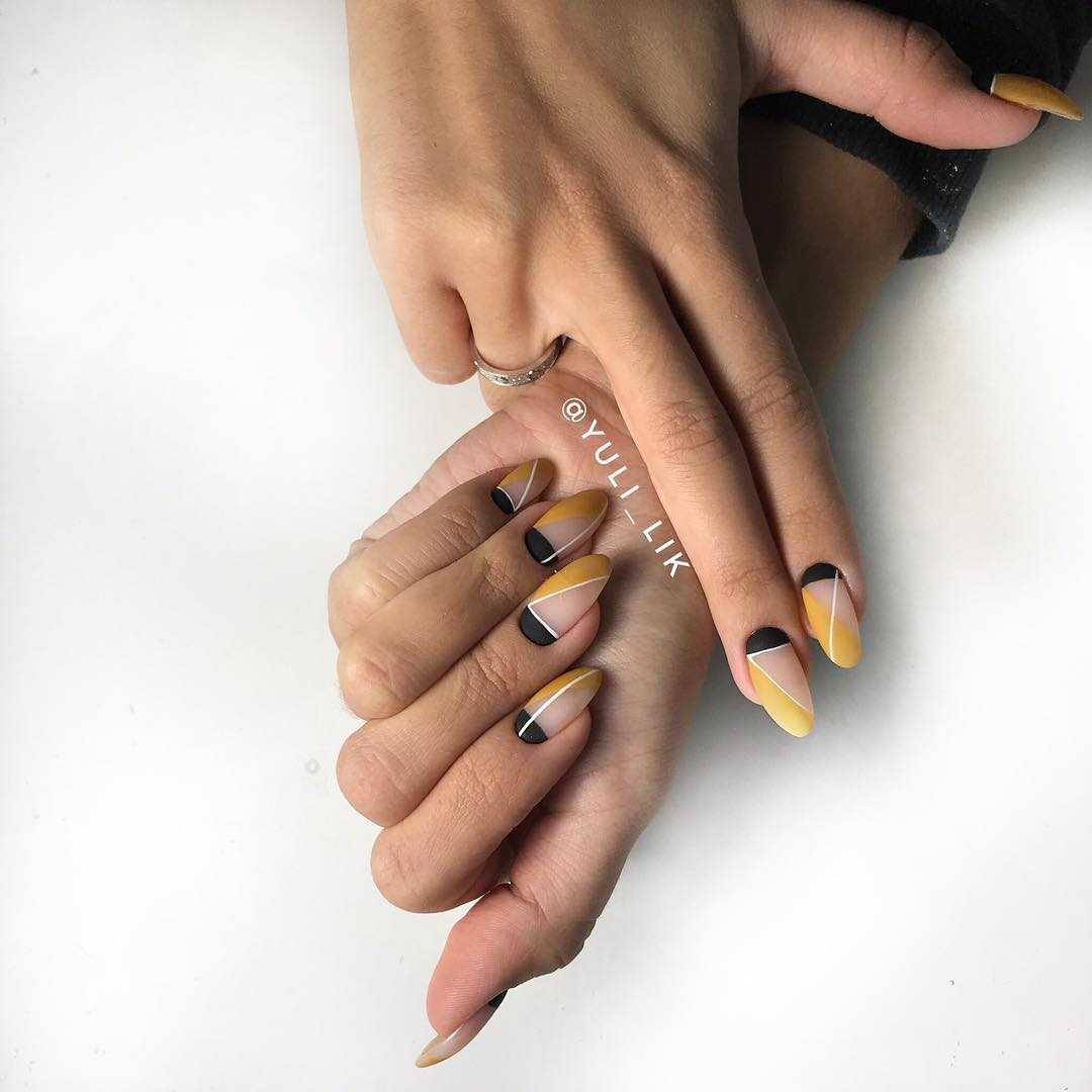 Маникюр с геометрическими фигурами понравится любительницам классики. Квадраты, кружочки, треугольники — все это в моде. Они могут быть разных размеров и цветов. Можно украсить все ногти, а можно только несколько. Подойдите к этому дизайну с творческой стороны и создайте с помощью фигур какой-то рисунок.