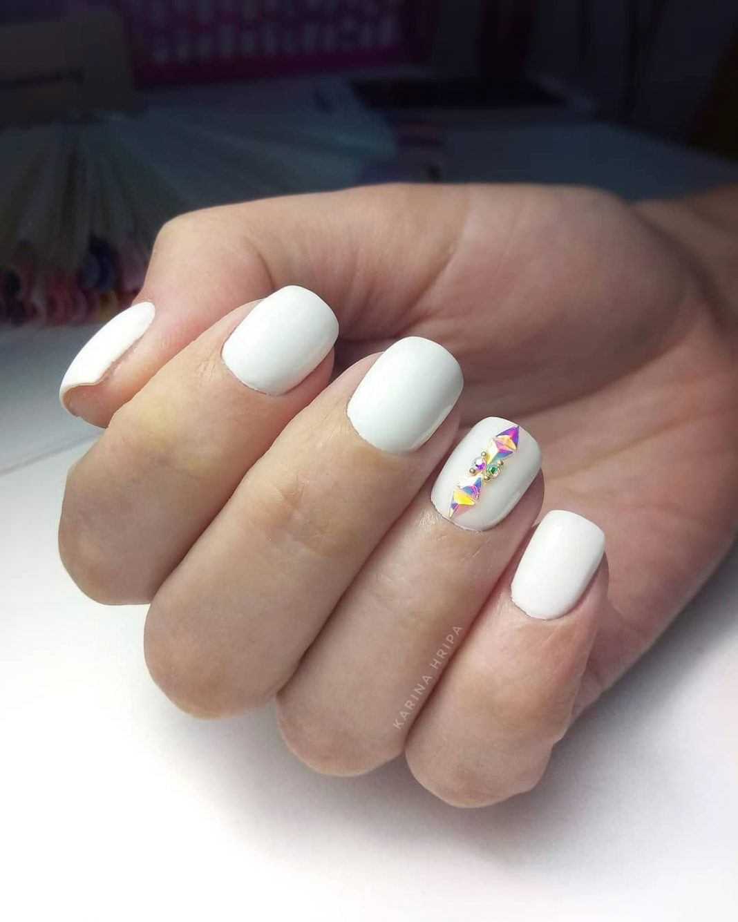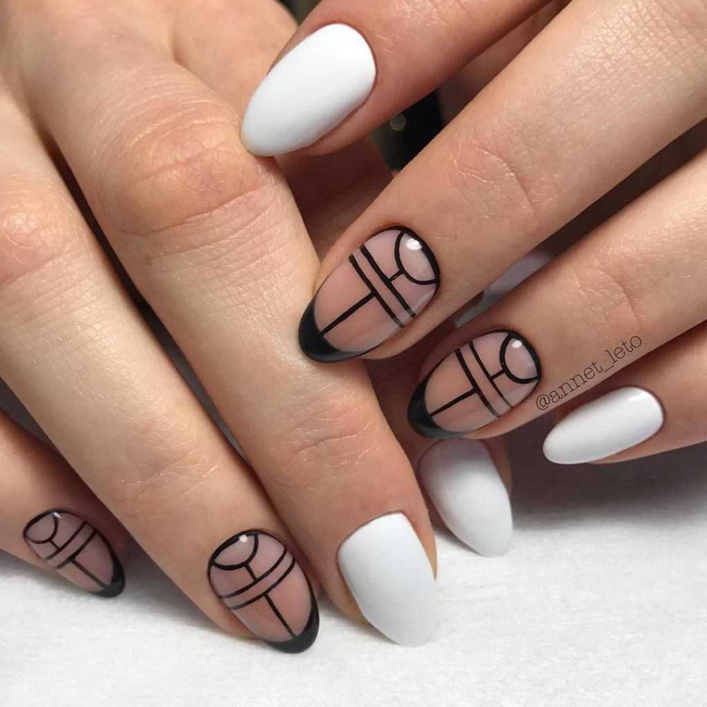 Его выбирают женщины каждый сезон, весна 2023 года не является исключением. Некоторые считают его скучным и слишком простым. Но если вы добавите золотые фрагменты, немного фольги, рисунки и прочие элементы декора, он заиграет совсем иначе. В этом сезоне нейл-мастера рекомендуют сделать белые матовые ногти с изображением лиц в черном цвете.