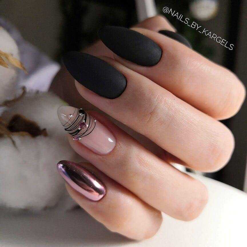 Стразы всегда выглядят стильно и модно, а на длинных ногтях будут смотреться просто шикарно. Самая крутая идея — черные ногти в сочетании с маленьким стразами на каждом пальце. Этот дизайн будет выглядеть одновременно элегантно и дерзко.