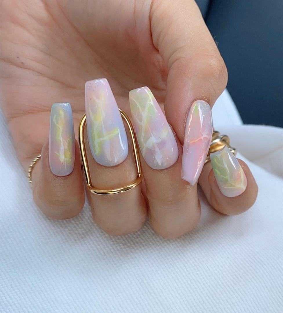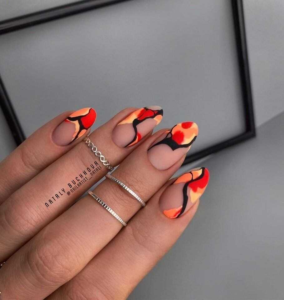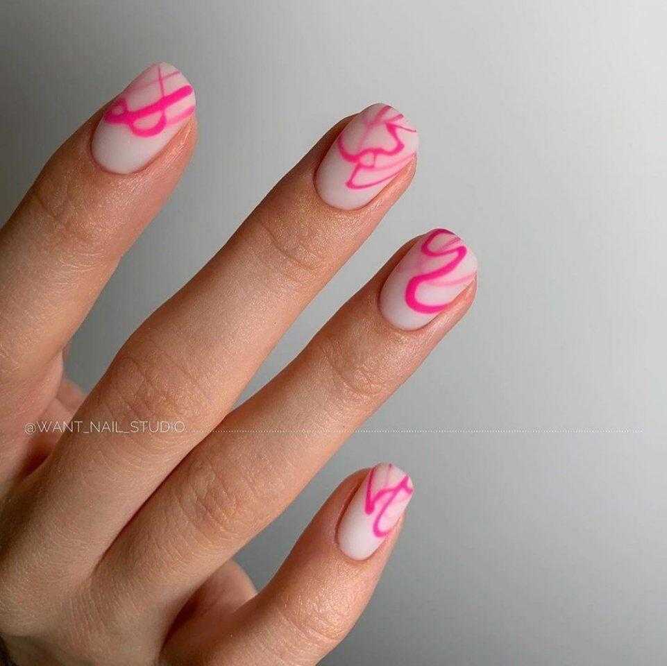 Абстрактный маникюр продолжает удерживать свои позиции и весной 2022. В новом сезоне нас также ждут хаотичные линии и разводы. Такой маникюр выполняется очень легко и быстро. Здесь не требуется точного соблюдение линий на каждом ногте. В этом и заключается вся прелесть абстрактного маникюра.