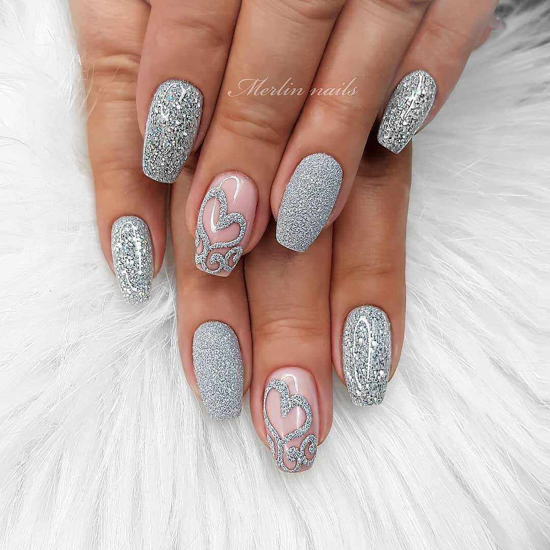 Серебряный маникюр довольно холодный. Он хорошо подойдет не первую половину весны, где еще цепкая зима не успела разжать свои когти. Большая длина ногтей раскрывает цвет серебра в полную силу. Здесь также можно использовать различные серебряные блестки, стразы с обязательно серебряным оттенком.