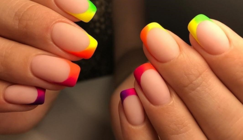 Это оформление ноготков вошло в самые красивые новинки весны 2023 года. Сегодня его часто можно увидеть у знаменитостей на фото в интернете. Особенно популярны многоцветные ногти, но нужно, чтобы оттенки были из одной цветовой палитры: конфетно-розовый, красный, абрикосовый, персиковый и оранжевый. Дизайн одного ногтя может выходить за рамки допустимого. Можете покрасить его белым или золотым цветом.