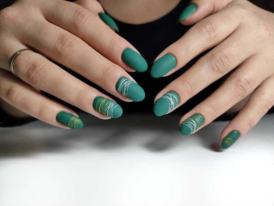 Зеленый хорошо сочетается с оттенками металлик, особенно золотым. Так что можешь смело использовать их, рисуя плавные линии и мазки на фисташковом фоне. Изумрудный и болотный красиво выглядят с матовым топом — еще одна идея тебе на заметку. В общем, вариантов множество. Остается лишь выбрать! Листай галерею и вдохновляйся. В ней ты точно найдешь дизайн, который захочется повторить.